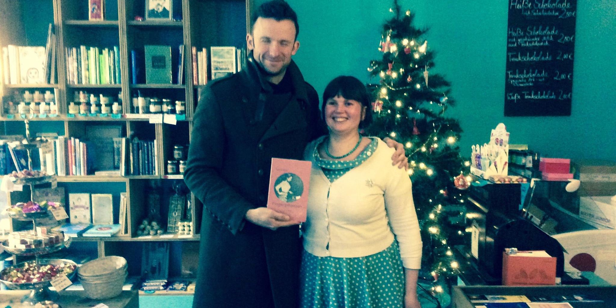Wir freuen uns ja immer, wenn wir von der wundervollen Buchhandlung & Chocolaterie „Fräulein Schneefeld & Herr Hund“ in Berlin hören. Diese Nachricht aber bezauberte uns besonders: Kristian Evju, der großartige Künstler, der die Bilder für Anna Kims „Fingerpflanzen“ zeichnete, war zu Besuch in der Buchhandlung – und war auch gleich für ein Erinnerungsfoto zu haben. Dazu schreibt „Herr Hund“: „Gestern war Anna Kim im Laden, die Autorin der „Fingerpflanzen“, dachte ich für den Bruchteil einer Sekunde, aber dann wurde mir klar: bei den Büchern von Topalian & Milani Verlag ist das zweite große Plus immer auch die Gestaltung, das Künstlerische neben dem Literarischen und es stellte sich so heraus, dass es der norwegische Künstler Kristian Evju gewesen ist, der mich selbst um zwei Köpfe überragt und da im Bild zwei meiner Schätze hält. (Herr Hund)“