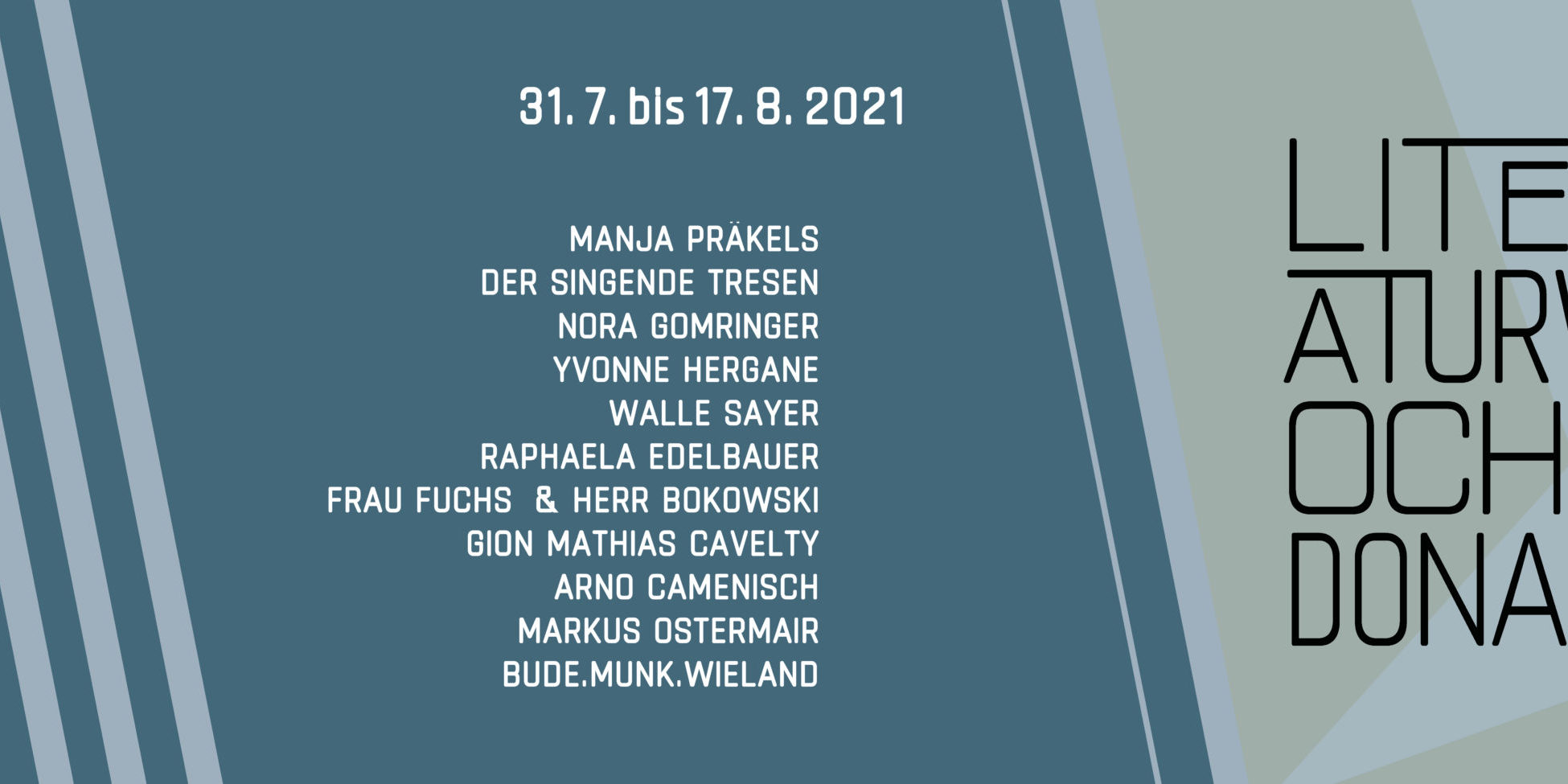 Die „Literaturwoche Donau“ wird seit 2013 ehrenamtlich organisiert und durchgeführt. Das Literaturfestival der unabhängigen Literatur präsentiert einen Mix aus Bekanntem und Neuem, Debütant*innen und „alten Hasen“, Wieder- und Neuentdeckungen, Schönes und Schräges, Heiteres und Ernstes, kurzum: Gute Literatur mit hochkarätigen Gästen aus der unabhängigen Literaturszene. Literatur als Ereignis für die Sinne – vor allem für den wichtigsten menschlichen Sinn, den Verstand. Kommen Sie, bringen Sie Freunde*innen mit, feiern Sie mit uns das gute Buch aus den unabhängigen Verlagen. Das wünschen: Florian L. Arnold, Rasmus Schöll