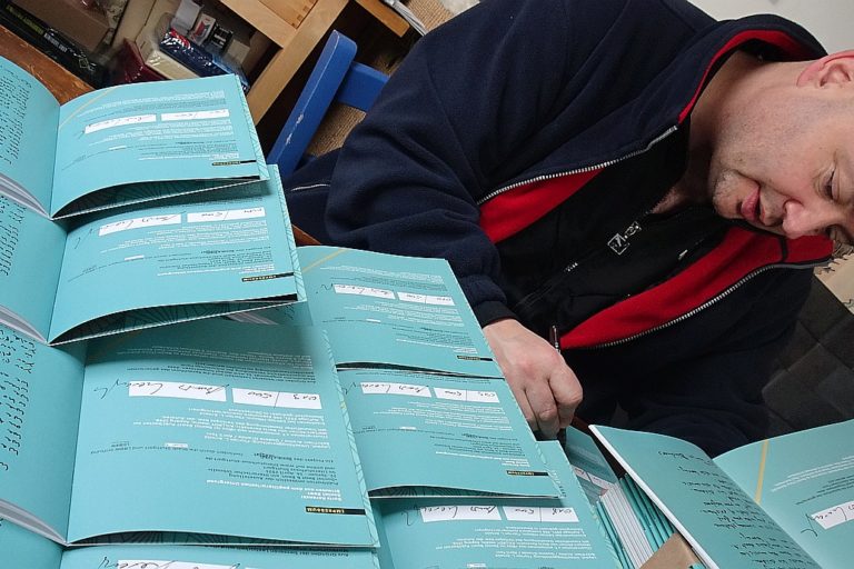 Unsere bibliophile Besonderheit „Das Buch mit den Seiten“ erfährt eine aufwändige Bearbeitung von Hand:…
